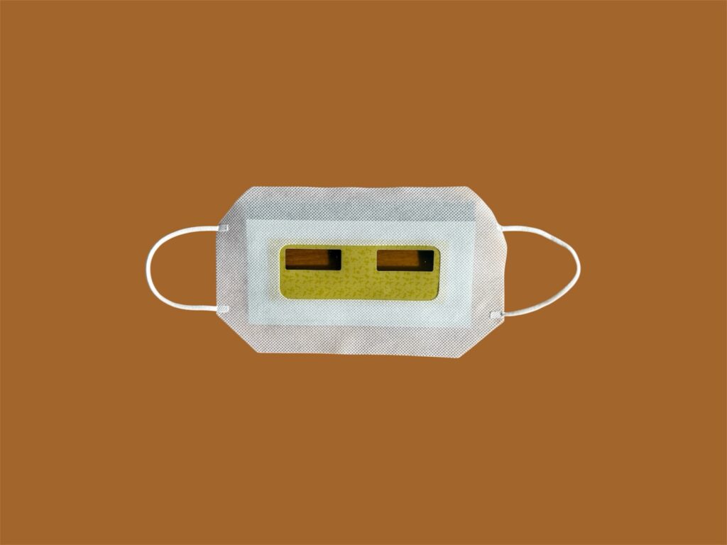 この装備のまま、まずは昼食。視界がぼやけ、指先が思い通りに動かない中での食事は、想像以上にストレスフルでした。後ろの席の方が匂いと音でパスタのソースをかけているのがわかりました。召し上がるのに苦労している様子が伝わってきます。